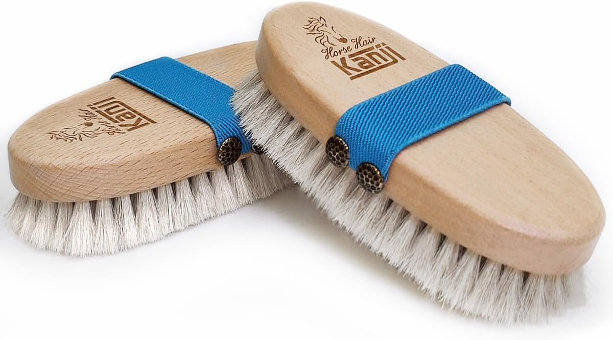 %100 Doğal At Kılı Masaj ve Kuru Fırçalama için Mavi Kemerli Vücut Peeling Selülit Fırçası