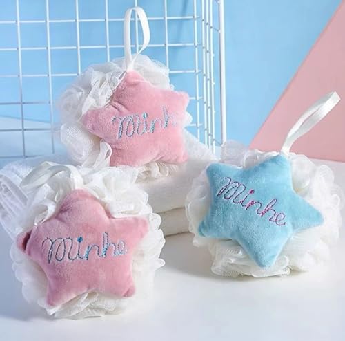 2 Adet Sevimli Yıldız Desenli Ponponlu Banyo Lifi, Çiftler İçin Özel Renkli Banyo Lifi