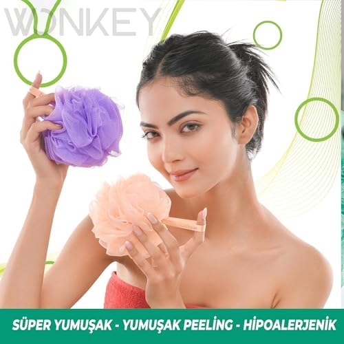WONKEY – Banyo ve Duş Lifi, Yumuşak Vücut Yıkama Lifi, Karışık Renkli Banyo Kesesi 2'li Paket