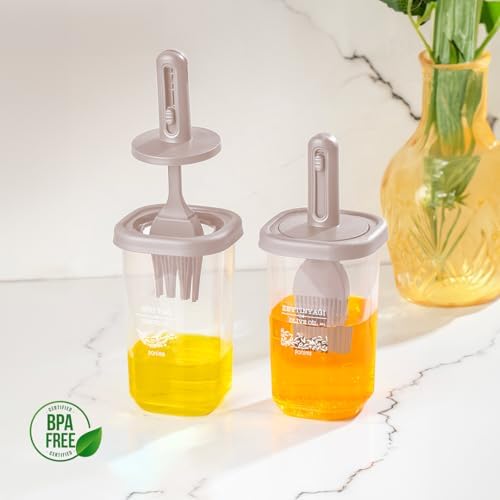 yağlık sosluk kolay kullanım 0520 2'li Etiketli Silikon Fırçalı Yağlık – Sosluk-Yağdanlık Erzak Saklama Kabı 350cc – Cappuccino
