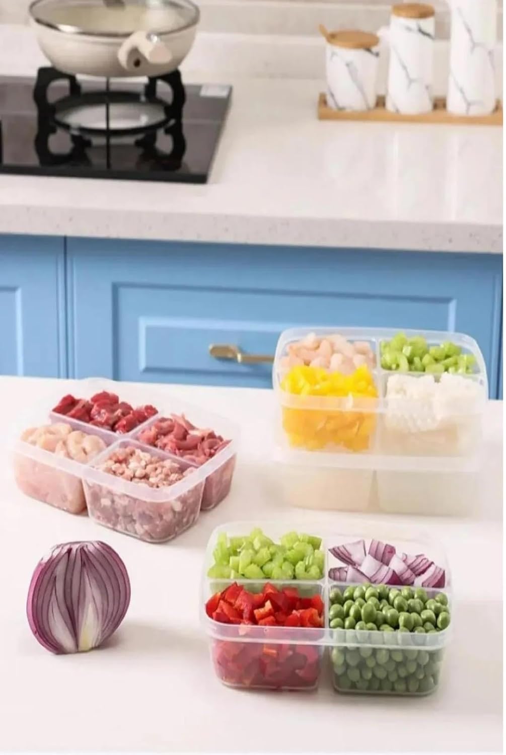 Buzdolabı saklama kabı 1 Adet 4 Bölmeli Öğünlük Et Ve Sebze Saklama Kabı – Dondurulmuş Bakliyat Buzluk Buzdolabı Kutusu Large (Beyaz)