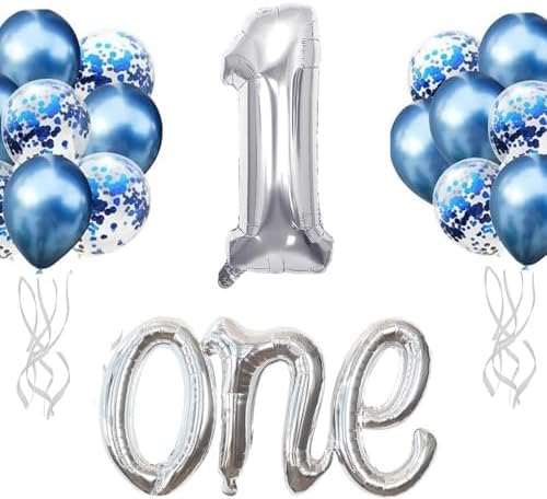 1 Rakam Folyo Balon ve Lateks Balon Seti 1 Yaş Doğum Günü Parti Kutlama Seti (Mavi Gümüş)