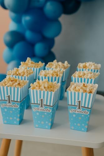 1 Yaş Erkek Doğum Günü Mavi Popcorn Mısır Kutusu – 8 Adet Mısır Kutusu Parti Süsleme ve Sunum Kutusu