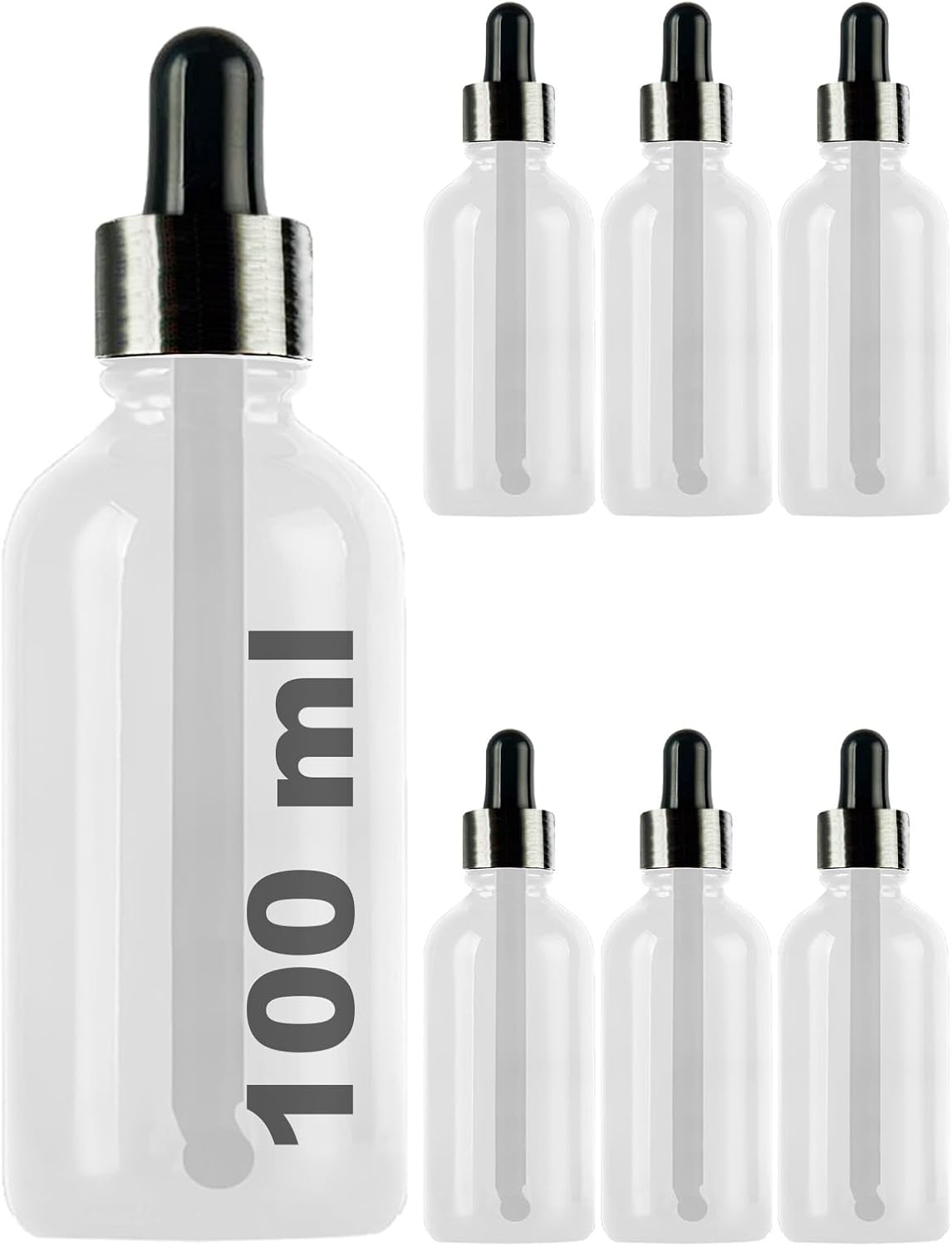 Cam Şişe 100 ml Metal Kapaklı Damlalık Dropper Şişesi Serum 100 cc Cam Şişe 6 Adet (Siyah Kapak, Şeffaf)