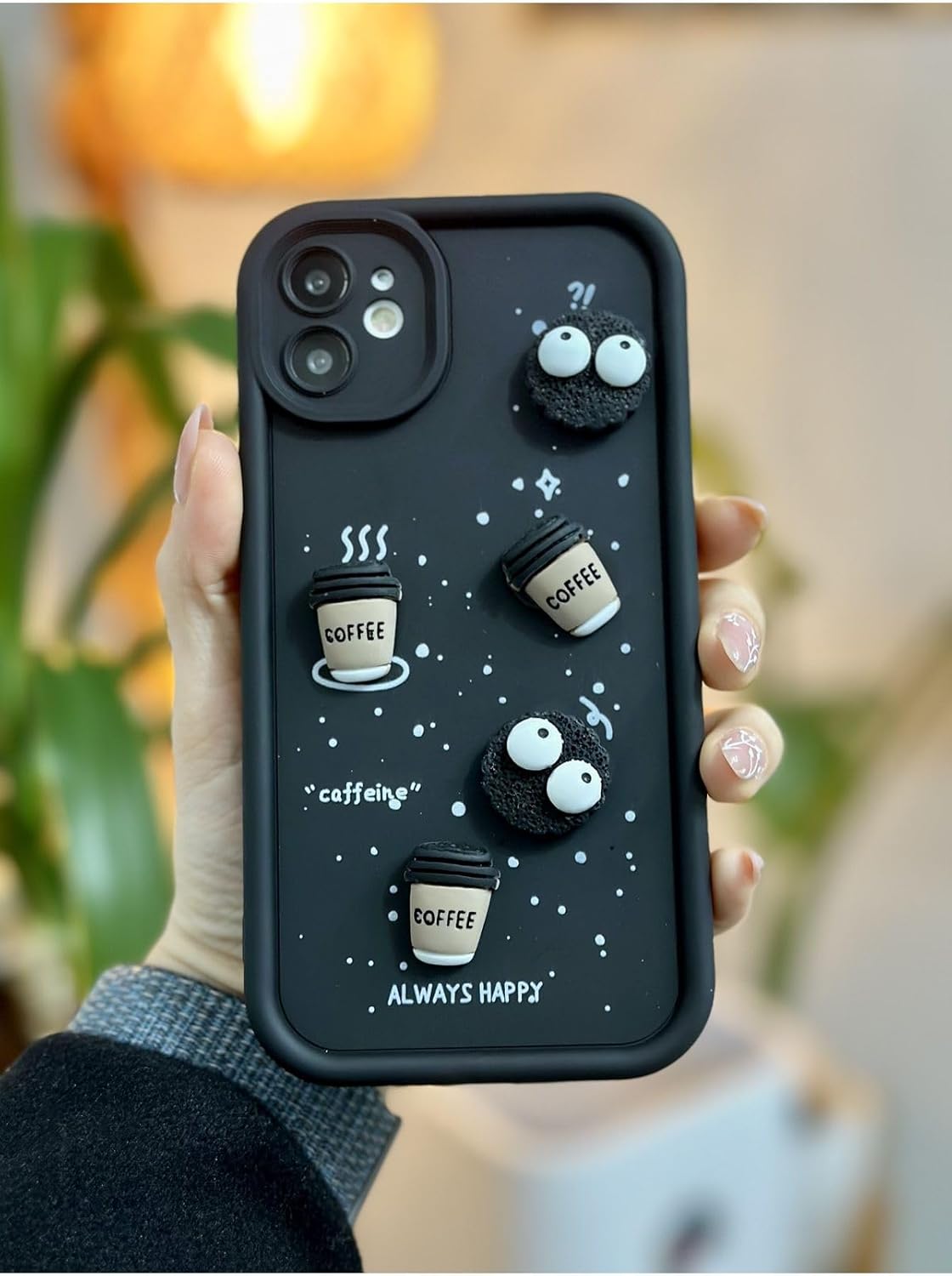 11 Tasarımlı Siyah Coffee Kurabiye Yumuşak Silikon Kamera Korumalı Kılıf