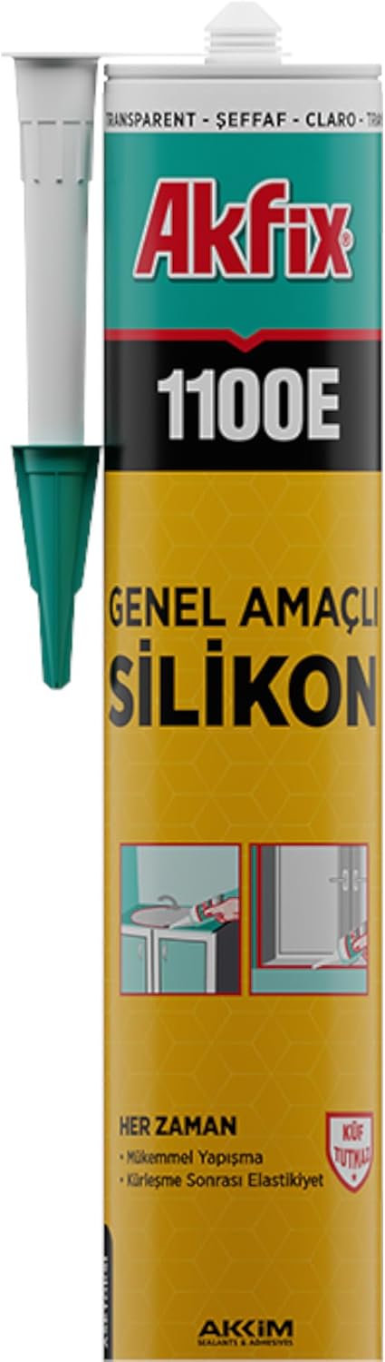 1100E Genel Amaçlı Silikon Elastik Yapıştırıcı, Banyo Mutfak Cam Montaj ve İzolasyon İçin (Şeffaf)