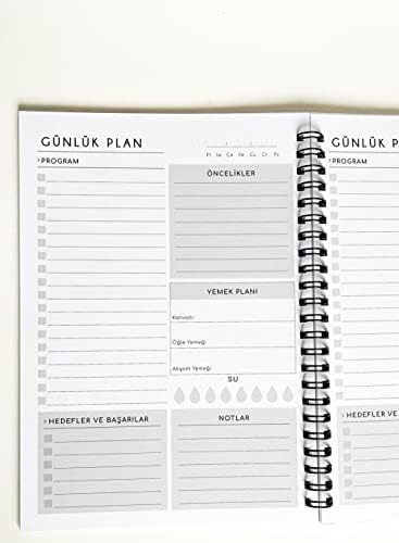 Menşe Ülke: Türkiye A5 (15 cm x 21 cm ) boyutunda tasarım 60 yaprak (120 sayfa) içerik 120 günlük tarihsiz planlayıcı Her iç sayfa 90 gr. Ivory kağıt ve 350 gr. Siyah kapak Spiralli yapısı ile kullanım kolaylığı Her sayfa geniş ve rahat yazım alanı sunar Taşıması ve kullanması pratiktir Günlük planlarınızı düzenlemek için ideal 120 Günlük Tarihsiz Spiralli Planlayıcı – A5 Boyutu, 60 Yaprak (120 Sayfa), 90 gr. Ivory Kağıt (Siyah Kapak)