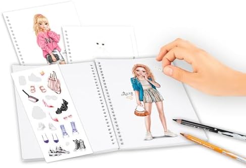 12727 – Cep boyama kitabı, pratik boyutta, kıyafet tasarlamak için 120 sayfa, çıkartma sayfalı ve spiral ciltli boyama kitabı