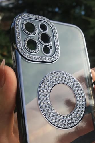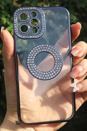 taşlı tasarım 13 Pro İle Uyumlu Taşlı Parlak Logo Açık Kadın Kılıf Kapak (Siyah)
