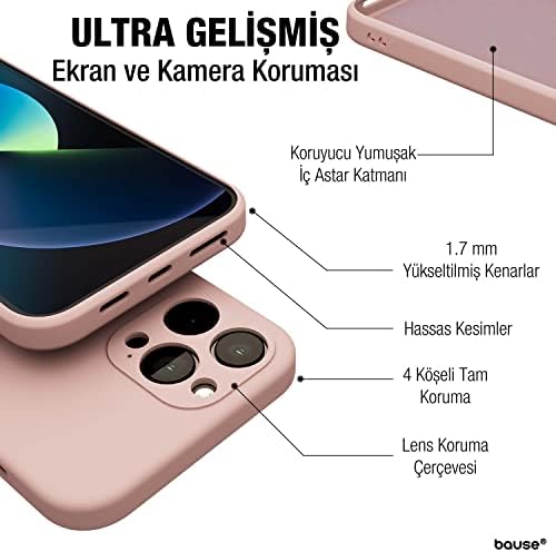 13 Pro uyumlu Kamera Korumalı, Mikrofiber Astarlı, Sıvı Silikon Kılıf (Kum Pembe)