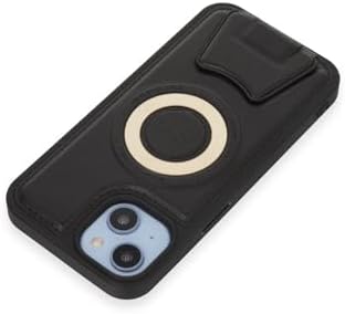 13 ve 14 İçin MagSafe ile uyumlu Arkası Deri Görünümlü, Yapıya Sahip Kamera Çerçeveli Ultra Güçlendirilmiş MagSafe Özellikli Açılır Stantlı Darbeye Dayanıklı Kılıf (Siyah)