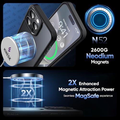 13 ve 14 için Mattmag Serisi ile Uyumlu Kablosuz Şarj Destekli Arkası Mat Silikon Kılıf Yükseltilmiş Lens Çerçeveli ve Metal Tuş Takımlı Ultra Güçlü Koruma Kılıf (Siyah, 13-14)