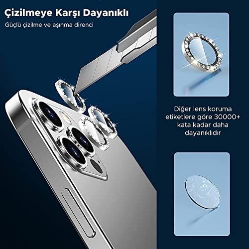 14 – 14 Plus uyumlu Taşlı Tasarımlı Kamera Lens Temperli Koruyucu