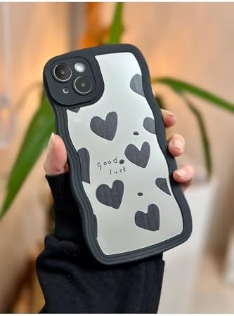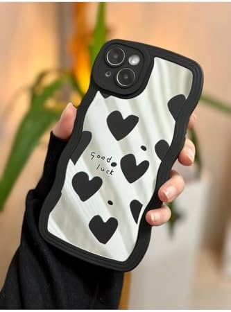 14 Plus – 15 Plus ile Uyumlu Aynalı SİYAH KALP Tasarımlı Kenarları Silikon Kılıf