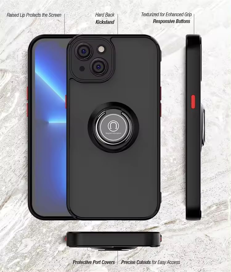 15 ile Uyumlu Arka Kısmı Mat Şeffaf Yapıya Sahip Manyetik Yüzük Stantlı Kenarları Silikon Tpu Malzemeden Üretilmiş Renkli Tuşlara Sahip Kamera Korumalı Transparan Kılıf (Yeşil)