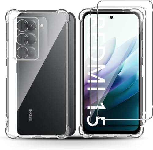15 Şeffaf Kılıf – Darbe Emici Köşeli Koruma, 1 Adet Telefon Kılıfı + 2 Adet Temperli Cam, Şeffaf Çizilmez Koruyucu Kılıf