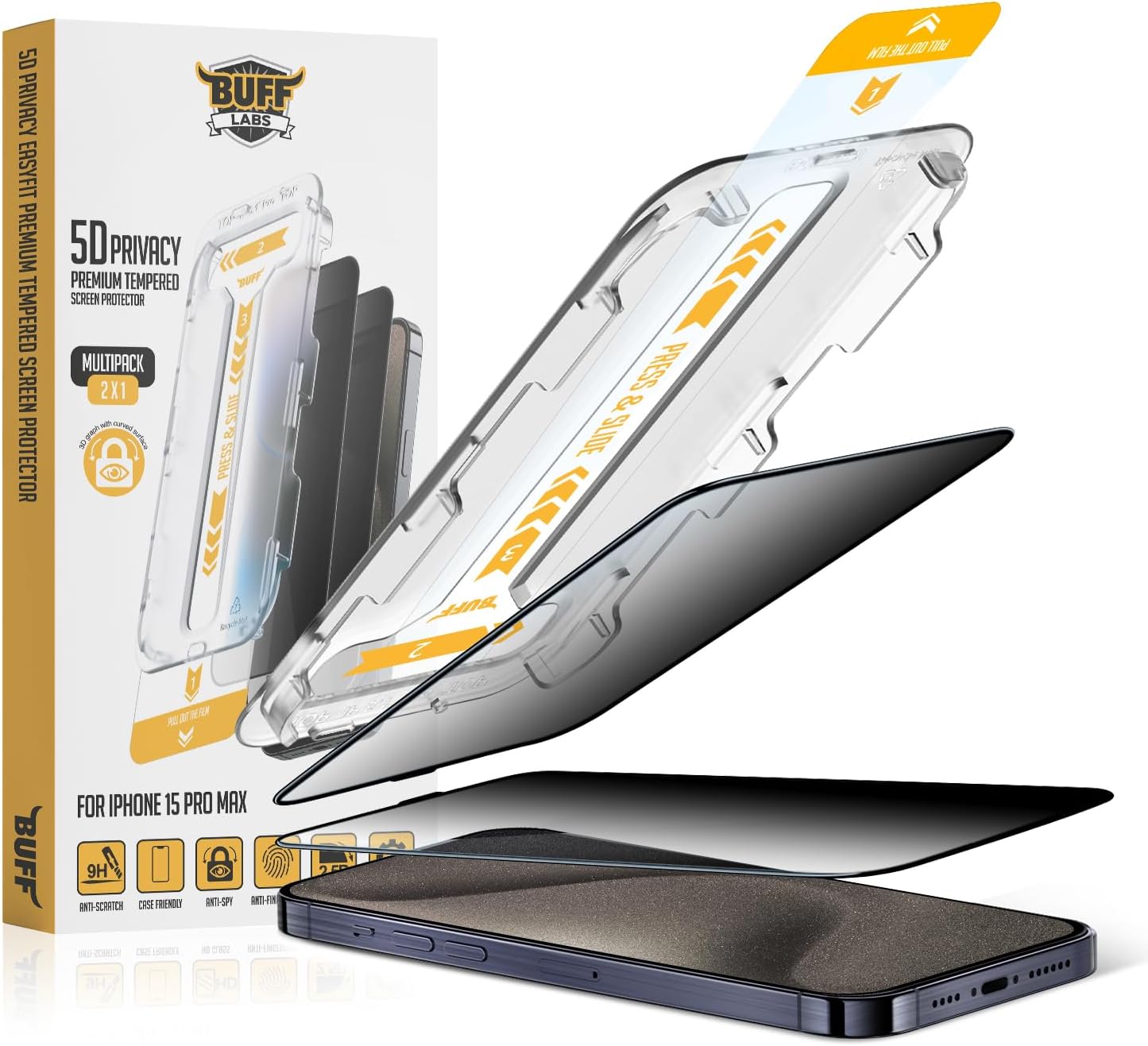 Otomatik Hizalama : Buff EasyFit ekran koruyucu takarken harcanan zamanı en aza indirecek şekilde tasarlanmıştır. Paket içeriğinde bulunan uygulama aparatı sayesinde oldukça kolay bir şekilde kurulumu tamamlayabilirsiniz. Toz Geçirmez Kolay Kurulum : Hızlı kurulum aparatına entegre toz alma etiketi ile birkaç saniyede kusursuz bir şekilde uygulama yapabilirsiniz. Dayanıklı Kaplama : Oleofobik kaplama ile parmak ve yüzünüzdeki yağın telefonla konuşurken ekran koruyucu üzerine bulaşmasını önlemeye yardımcı olur, böylece cihazınız harika görünür ve kolayca temizlenir. Pürüzsüz Dokunuş : Maksimum şeffaflık için tasarlanmış 5D PRIVACY CAM, ekranı görüntü kaybı olmadan en net şekilde görebilmeniz için tasarlanmıştır. Üstün Koruma : Ekran kırılmasına, düşmelere, çizilmelere veya darbelere karşı yardımcı koruma 15 Serisi ile Uyumlu 5D Privacy EasyFit 2 Adet Kolay Uygulama Aparatlı Ekran Koruyucu Temperli Cam Hayalet Ekran (15 Pro Max)