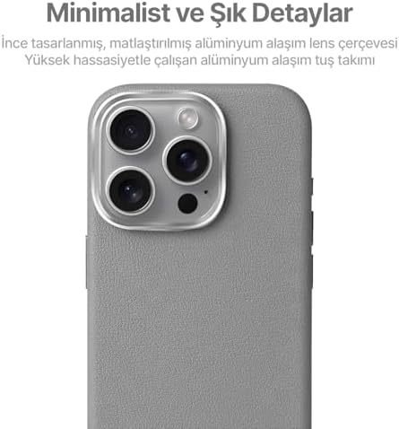 【Pu Deri Kaplama】: Sararmayan ve çizilmeyen, göz alıcı, şık ve premium bir görüntü sunan Pu deri kaplaması 【Güçlü Koruma】: Kılıfa şıklık katan ve ele tam oturarak cihazı güvenli bir şekilde kavramanızı sağlayan oluklu kenarlar, 1. sınıf TPU malzeme kullanılarak üretilmiştir. 0.25 mm kalınlığındaki TPU kenarlar, cihazı en sert darbelere karşı dahi mükemmel şekilde korur. 【Metal Detaylar】 : Kılıfın premium tasarımına bağlı kalınarak düşülmüş, matlaştırılmış metal lens çerçevesi, kılıfın şıklığını bir adım öteye taşır. Ayrıca metal tuş takımı hem şık bir görünüm sunar hem de butonların hassasiyetini etkilemeden telefonunuzu kullanmanızı sağlar. 【Mükemmel Kalıp】: Telefonu tam olarak sarması ve kenarlardan boşluk bırakmaması için, her model kendi kalıbında milimetrik özenle üretilmiştir. 【İnceltilmiş Tasarım】: Telefonu milimetrik olarak kavrayan ve ince üretilmiş bu kılıf kullanım anında yormayan, hoş bir kavrama hissiyatına sahiptir. 16 Pro için MagSafe ile Uyumlu Çizilmeyen ve Parmak İzi Tutmayan Deri Görünümlü Metal Tuşlu ve Metal Lens Çerçeveli Hybrid Silikon Kılıf (Gri, 16 Pro)