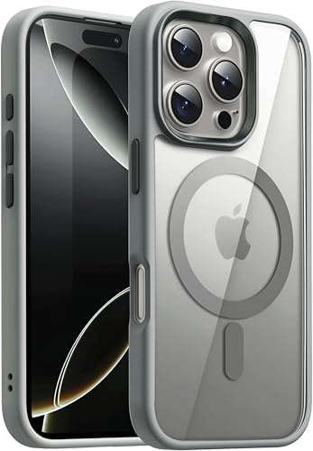 16 Pro için SUPER-CRYSTAL ile Uyumlu Kılıf Arkası Kristal Berraklığında Cam Görünüm Kenarları Darbe Emici Silikon Hybrid Kılıf (Titanyum Gri, 16 Pro)