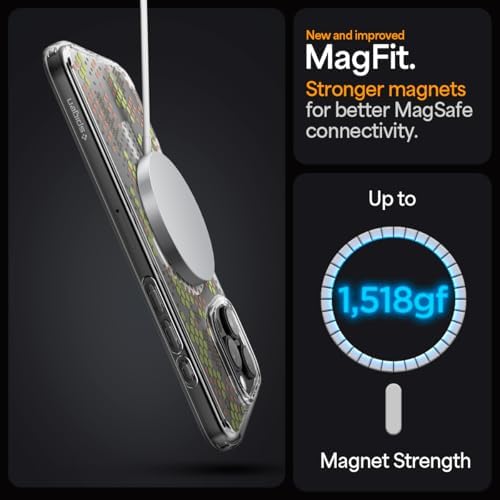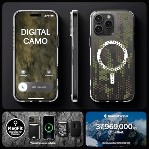 16 Pro ile Uyumlu ince MagSafe Kılıf Ultra Hybrid Sararma Karşıtı DuraClear™ Hava Kanalı Teknolojisi™ Askeri Sınıf Koruma MagFit Digital Camo Tasarım Kapak – ACS08140