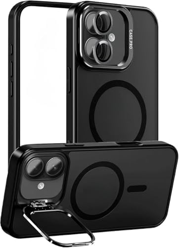 17 için Kılıf Kamera Korumalı Şarj Özellikli Lens Hediyeli Mat Şeffaf Renkli Standlı için Kılıf (Siyah)