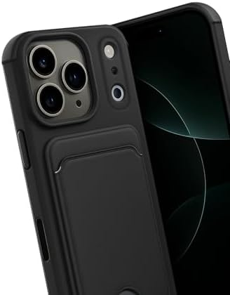 17 Pro ile uyumlu Kılıf N-Kelvin Kartvizitli Kart Taşıma Cebi Soft- Silikon Kapak (Siyah, 17 Pro)