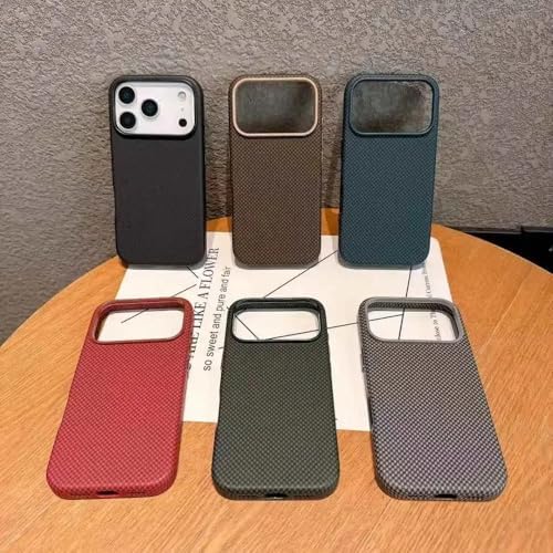 17 Pro Max ile Uyumlu Karbon Fiber Desenli Premium Kılıf Kevlar Kenar İnce ve Hafif Tasarım Kablosuz Şarj ve MagSafe ile uyumlu Telefon Kılıfı Kahverengi