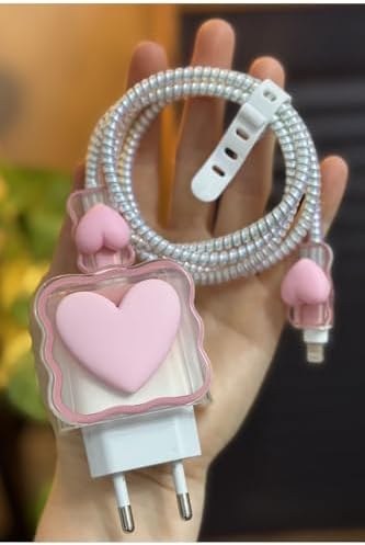 18/20 W Şarj Cihazı ile Uyumlu 5 Parça Şarj Koruma Seti Kalp Model – Pembe