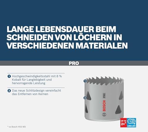 Yüzde 8 kobalt içeriği sayesinde standart HSS delik açma testerelerine kıyasla iki kata kadar daha uzun kullanım süresi sunar Elektrik teknisyenleri ve tesisat ustaları için verimli Uzun kullanım ömrü 44 mm kesim derinliğine sahip şaftlı delik açma testereleriyle kullanım için Ahşap, alçı levha, GFK ve metaller gibi yaygın olarak kullanılan çeşitli inşaat ve iç mekan malzemelerinde delik açmak için PRO Multi Material Delik Açma Testeresi 1x PRO Multi Material Delik Açma Testeresi (Yumuşak Ahşap, Alçıpan, Ø 111 mm, Professional Aksesuar Döner Matkap/Vidalamalar, Darbeli Matkap/Vidalama)