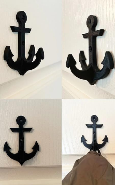 2 Adet Çapa Model Elbise Vestiyer Duvar Askısı, Duvar Dolap Kapı Askılığı, Sert Plastik Duvar Askısı, Sert Plastik, Siyah, 7.5×4.5×10.5 cm,ikili