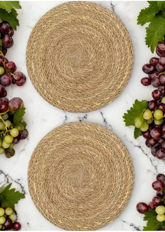 2 ADET Hasır Yuvarlak Amerikan Servis Tabak Tava Tencere Altlığı – Runner Supla Altlık 35 Cm (2)