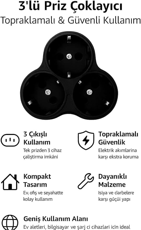 2 Adet koyu füme 3’lü priz dönüştürücü, şık ve dayanıklı tasarımıyla ev ve ofislerde güvenli kullanım sunar. Topraklı, ısıya dayanıklı ve çocuk korumalı yapısıyla uzun ömürlüdür.