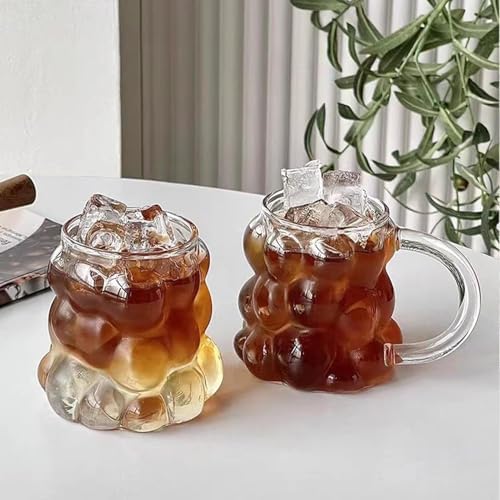 2 Adet Kulplu Boncuk Şekilli Cam Bardak – 350ml Borosilikat Üzüm & Kabarcıklı Tasarım | ve Darbeye Dayanıklı Soğuk Kahve, Çay, Meyve Suyu Bardağı (Kulplu 3D Cam Bardak Seti)