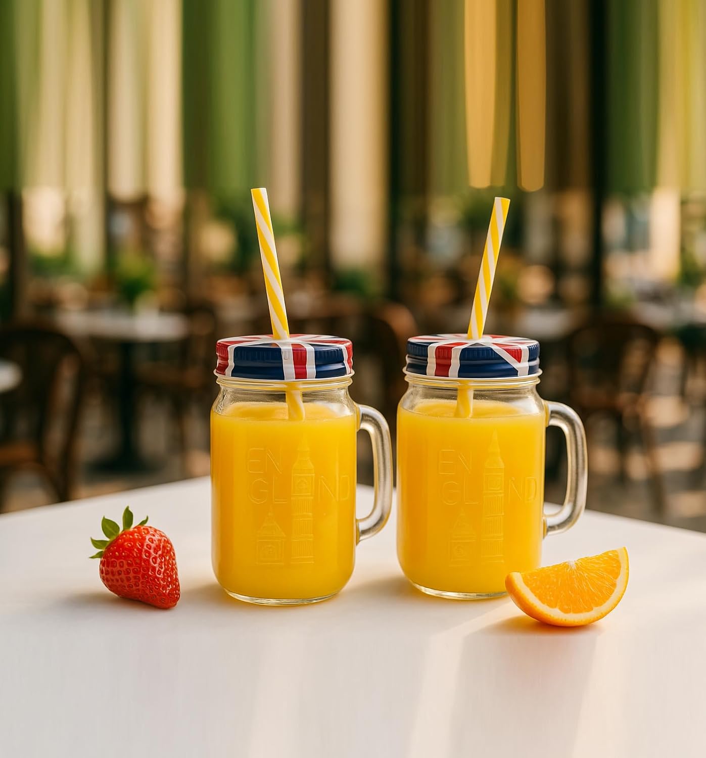 2 Adet Pipetli Kapaklı Cam Kupa England Kupa Bardak 490 ml