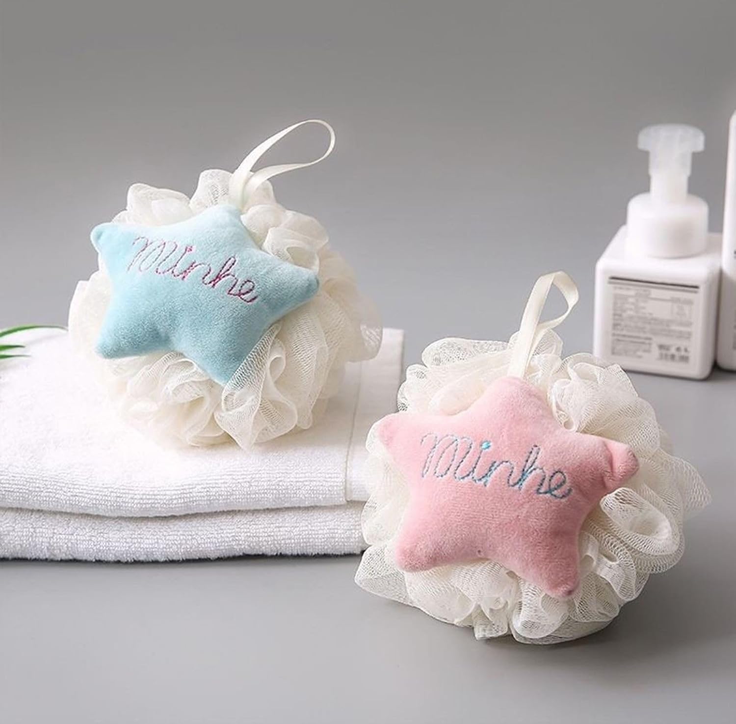 2 Adet Sevimli Yıldız Desenli Ponponlu Banyo Lifi, Çiftler İçin Özel Renkli Banyo Lifi