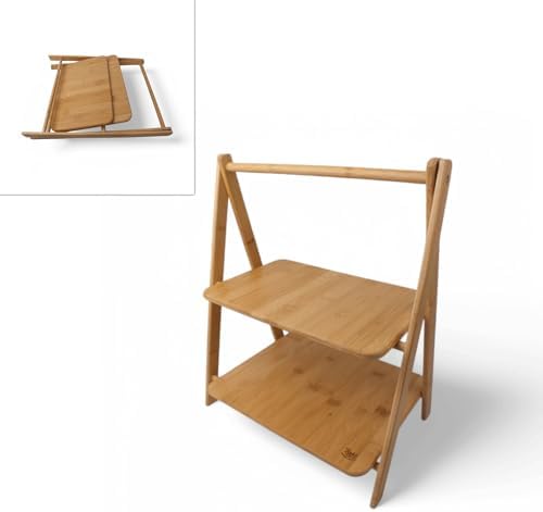 2 Katlı Dikdörtgen Bambu Servis Sunum Seti Büyük Boy, Kuru Pasta, Kurabiye ve Kek Sunumları İçin Büyük Boy (38cm-30cm-22.5cm)