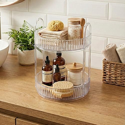 2 Katlı Makyaj Organizeri Kozmetik Aksesuar Düzenleyici Kozmetik Vitrini Yuvarlak (Şeffaf)