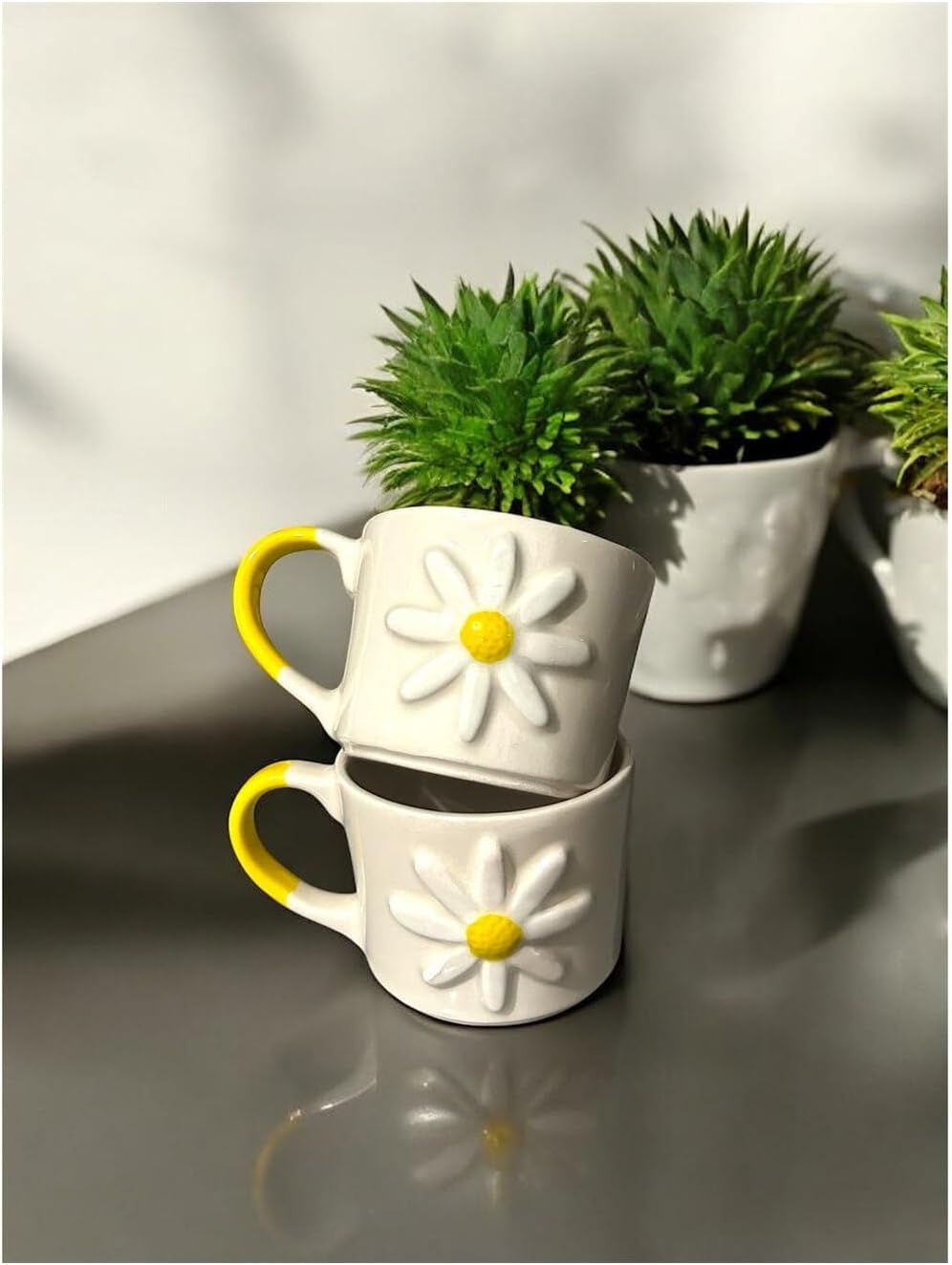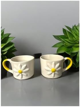 2 Lİ EL YAPIMI PAPATYA MODEL KABARTMALI SERAMİK KUPA