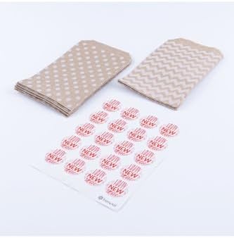 20 adet puantiye ve zikzak desenli kese kağıdı (11×20 cm) ve kırmızı happy new year stickerdan oluş