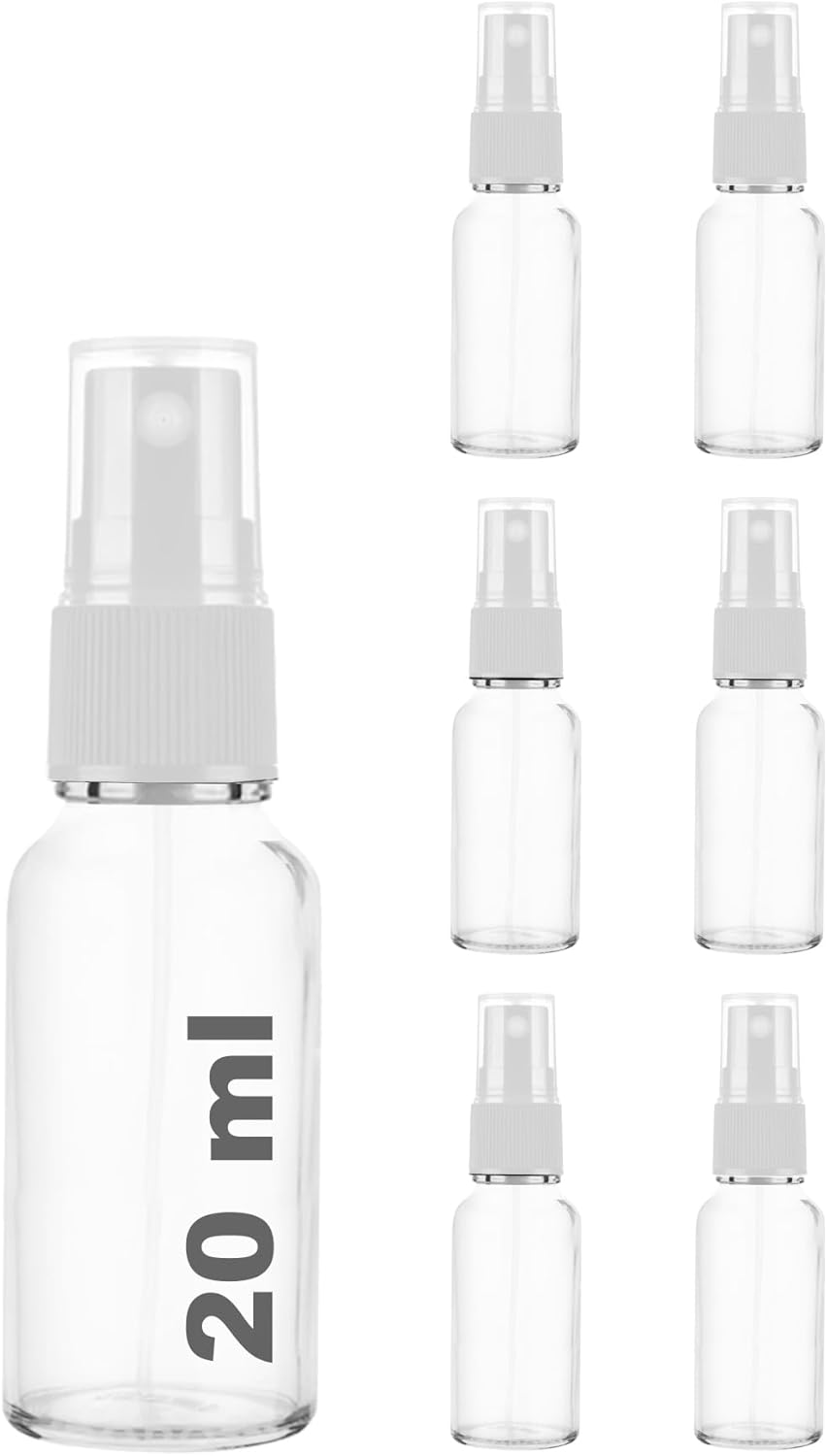 20 ml Beyaz Spreyli Şeffaf Cam Şişe 20 cc Sızdırmaz Kapaklı Fısfıs Beyaz Cam Şişe 6 Adet