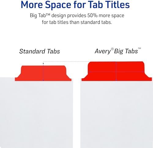 Güçlendirilmiş sağlam kağıt ayırıcılar yazmaya, silmeye ve tekrar kullanıma olanak sağlar Tükenmez kalem veya kurşun kalem ile doğrudan tabletlere yazın Büyük tablet tasarımı yazmak için 1,5 kat daha fazla yer sunar Altın takviyeli delikler ek dayanıklılık sağlar 23076 Big Tab kırma ve silme ayırıcı, 5 renkli sekme, 1 set 5 binici 48 paket