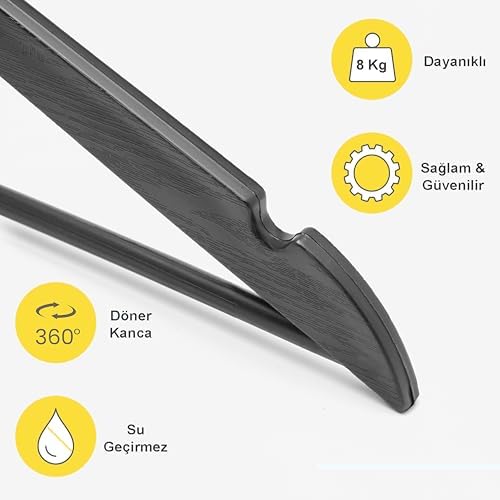 24 Adet Siyah Ahşap Görünümlü Plastik Askı Kıyafet Elbise Gömlek Askısı Kancalı
