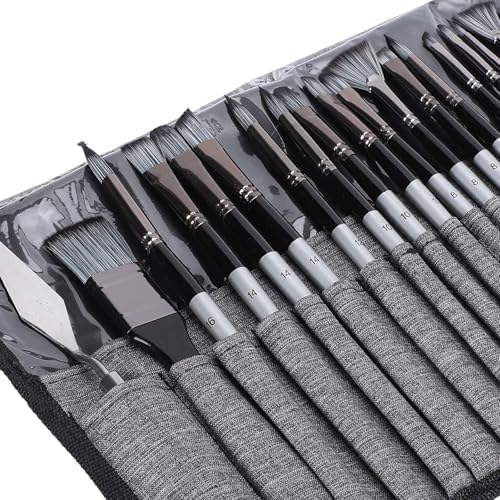 , yağlı boya, guaj, akrilik boyama, vücut, tırnak, yüz boyama, duvar boyama, el sanatları boyama vb. alanlarda yaygın olarak kullanılır. Kazıyıcı spatulası metaldir. Konfor ve kontrol için tasarlanan ahşap saplı fırça hafiftir ve kavraması kolaydır. Fırçayı korumak ve düşmesini önlemek için kanvas çanta ile birlikte gelir ve taşıması çok rahattır. Parça Sayısı: 24 Adet. Malzeme: Sentetik, ahşap, alüminyum. Çanta: Kanvas. Resim çantası ölçüleri (U x G): Yaklaşık 26 x 11,5 cm Fırçalar sentetik kıllardan oluşur, yumuşak ve esnektir, deforme olması ve kıl dökülmesi kolay değildir, boyaları emmesi kolaydır. Bu mükemmel fırça seti sanatsal ifadenizi daha iyi hale getirir. 24 Parça Akrilik Yağlıboya Guaj Boya Fırça Seti Sentetik Fırça Ahşap Sap Kullanışlı Çanta