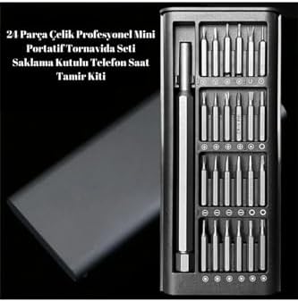 24 Parça Çelik Profesyonel Mini Portatif Tornavida Seti Saklama Kutulu Telefon Saat Tamir Kiti