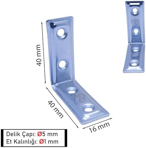 25 ad. L Demir Gönye Köşebent 16x40x40mm- Mobilya Dolap Raf Masa Köşe Bağlantı Birleştirme Sabitleme Aparatı