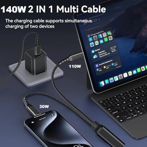 Güvenli ve Hızlı Şarj için Akıllı Voltaj Bölmeli Çip PD3.1, PD3.0 ve PD2.0 hızlı şarj protokollerini destekler. Bu protokolleri destekleyen bir duvar şarj başlığı ile tam verim alabilirsiniz. Tek port çıkışı maksimum 28V/5A 140W ve 480MBPS Veri Senkronizasyonu 2 cihazla çıkış yapıldığında maksimum 110W ve 30W'a kadar akıllı dağıtım 5V için mavi, 9-28V için kırmızı yanan LED TYPE-C giriş portuna sahip Dizüstü Bilgisayar, Cep Telefonu, Tablet ve Diğer Cihazlarla Uyumlu Kablo uzunluğu 120 cm 2in1 Örgü Kablo ile Uyumlu Type-C PD 3.1 140W Hızlı Şarj