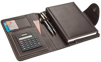 2K 4681 Ajanda Tarihsiz Çizgili 14 x 20 Cm Ajanda/Defter Hesap Makineli Deri Organizer, Kahverengi
