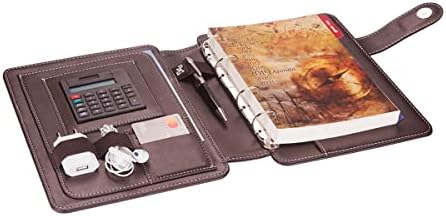 2K 5292 Ajanda Tarihsiz Çizgili Deri Telefon Kılıflı 4 Halka Mekanizmalı Hesap Makineli Organizer, Kahverengi