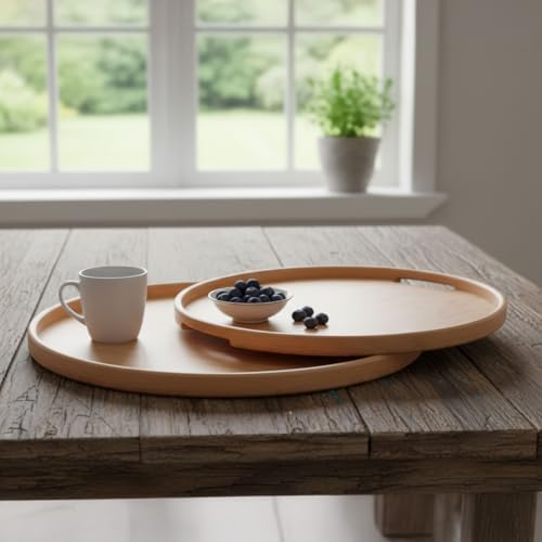 2'li Bambu Tepsi Seti, İnce Tasarım Özel Üretim Yuvarlak 2'li Bambu Tepsi Seti (33 * 22 * 1cm-40 * 28 * 1cm)