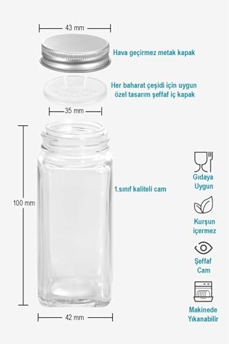 Hava Geçirmez Metal Kapak, 1. Sınıf Kaliteli Cam 2'li Cam Baharatlık Seti Kapaklı Etiketli Baharatlık Takımı